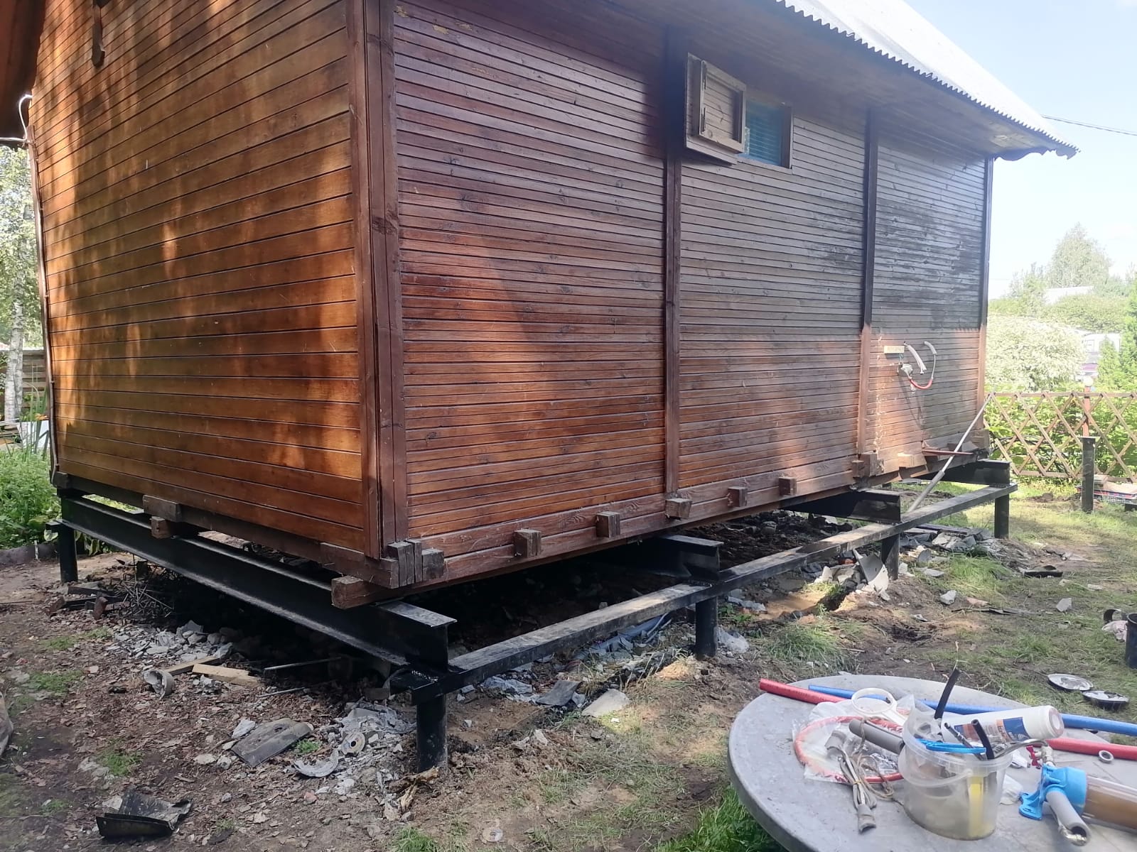 Заменили старый фундамент на винтовые сваи с двутавровой балкой 200мм